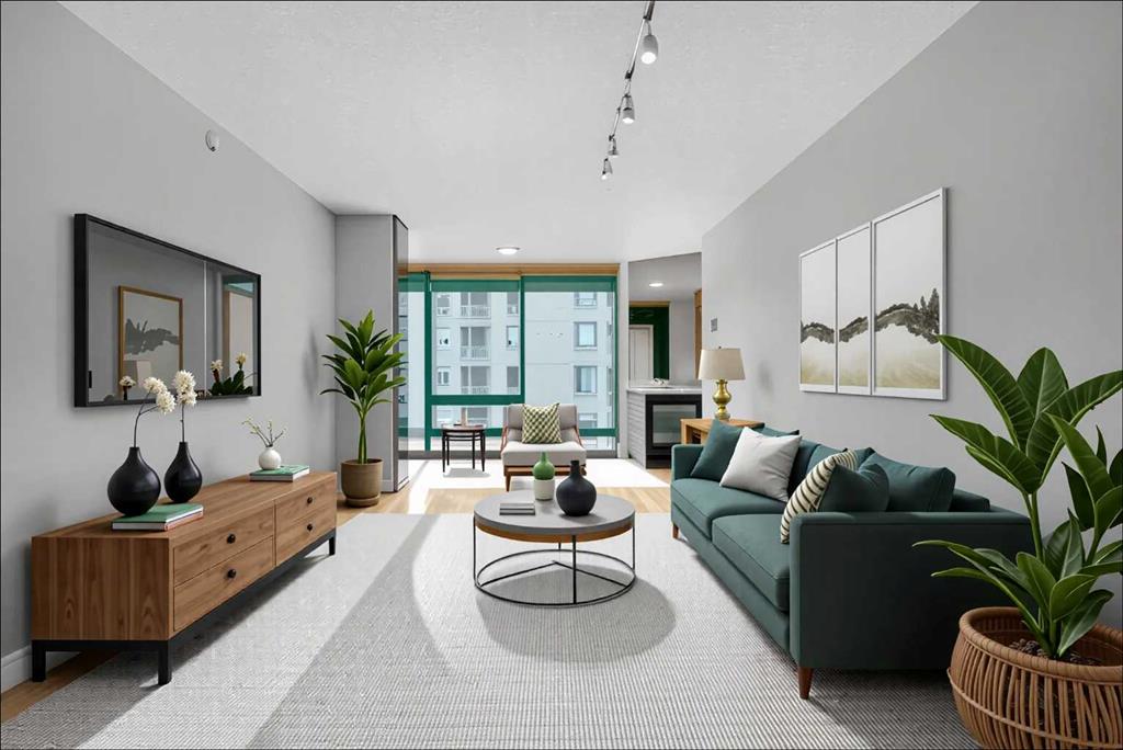 Just steps to the Bow River Pathways and the beauty of Princess Island Park in the sought community of Eau Clair. This 9th floor, 926 Sq ft condo offers relaxing partial river & area views from your large south facing balcony. Concrete building, with Titled underground parking + your own huge private Titled singular storage locker. Stepping inside, balances warmth and functionality with abundant natural light, creating a bright and comfortable atmosphere. The open concept design provides various options for furniture arrangement in the spacious living room with cozy Gas Fireplace. Flowing seamlessly, a good sized dining area provides plenty of room for entertaining and family dinners. Hardwood floors. A well laid out kitchen with ceramic flooring. The Primary Suite offers a 4pc ensuite. 2nd bedroom, 3pc main bathroom. In-suite laundry & storage. Amenities include Gym, social rm- (main level), Outdoor Terrace/Sundeck -(10th fl), - Library, with great views of DT- (14th fl,) Car wash bay, Pets with board approval. Age restricted, one occupant must be over 30. A well managed building & reasonable condo fees. Visitor parking. Enjoy the fabulous Eau Claire lifestyle-restaurants, parks, pathways, downtown, transit, amenities, all close by. Immediate possession.
